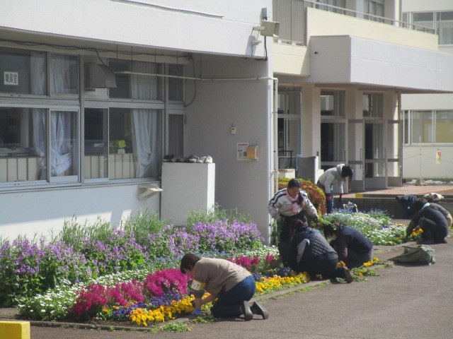 いつも定期的に行っていただいている、植栽ボランティアの方々の活動が行われ、卒業式・入学式に向けて、花壇の手入れをしていただきました。お忙しい中、いつもありがとうございます。きれいな花々に彩られ、子供たちも喜んでいます。