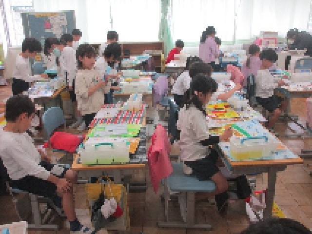 友達と関わり合いながら自分の気持ちを伝える作品をつくって飾る。