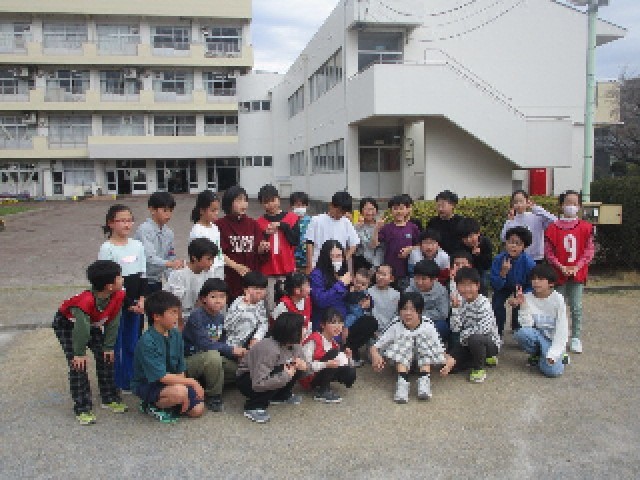 4年3組の3時間目のお楽しみ体育の活動に、育児休業中の先生が顔を出してくれました。久ぶりの再会に、子供たちもびっくりしていましたが、楽しく談笑しながらみんなで記念撮影をしました。