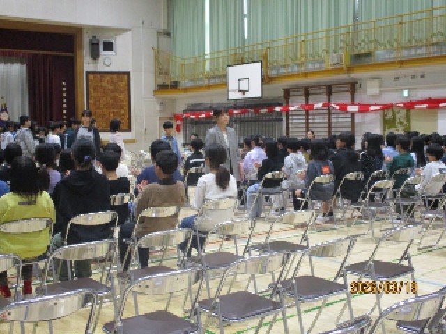 門出の言葉も堂々とした所作で行うことができ、退場までおよそ1時間半の予行練習を終えることができました。5年生もしっかり最後まで緊張感をもって参加することができ、大変立派でした。来週24日の本番は、きっと感動的な旅立ちの日になると思います。