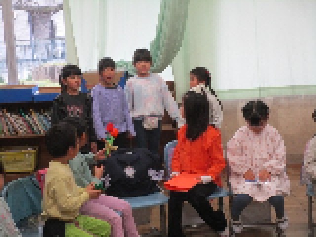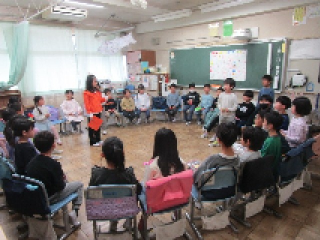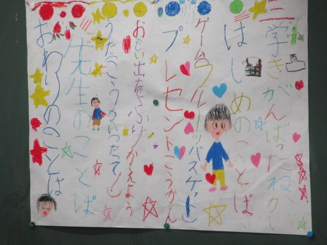 2時間目の2組の教室では、先週準備していたお楽しみ会を行っていました。それぞれ分担した役割をしっかり果たし、みんなで満足そうでした。1年生のよい思い出作りができたようです。