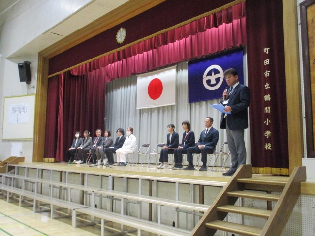 校長先生より発表されるたびに、子供たちから驚きの声があがり、去られる先生方が壇上に上がります。
