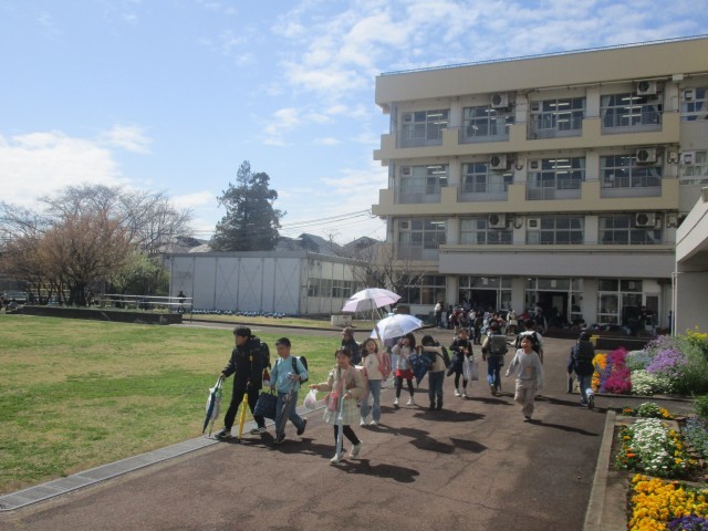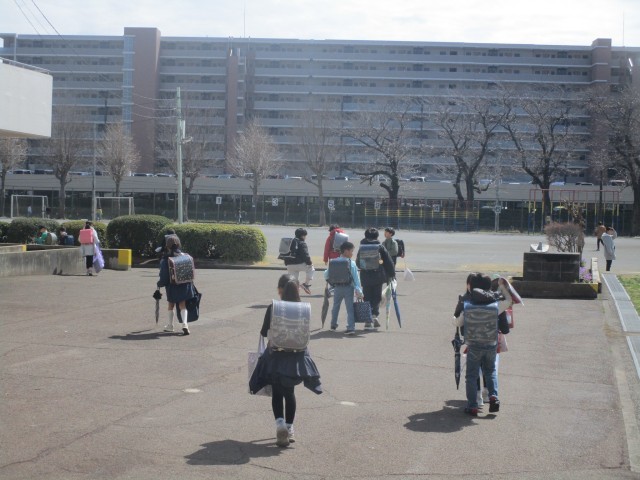 明日の卒業式の準備のために、5年生以外は4時間授業で下校となります。朝の雨もすっかりやんで、きれいな青空が広がっています。手にはたくさんの荷物を持った子供たちが家路を急ぎます。明日は6年生の卒業式です。このまま、いい天気で明日を迎えられるといいです。