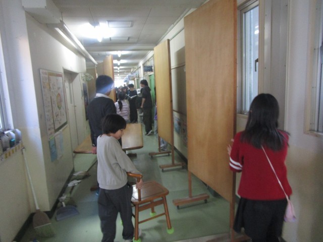午後5時間目は、5年生が残って、明日の卒業式の会場準備などをします。6年生の晴れの舞台のために、体育館をきれいにしたり、装飾などの準備も手伝いました。後輩たちの後押しもあって、明日はきっとすてきな卒業式になるでしょう。