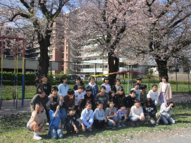 始業式の後、6年生は校庭に残り、各クラスに分かれて集合写真を撮りました。校庭の桜もまだまだ見頃で、6年生としての新たなスタートを、みんな笑顔で写真に残しました。
