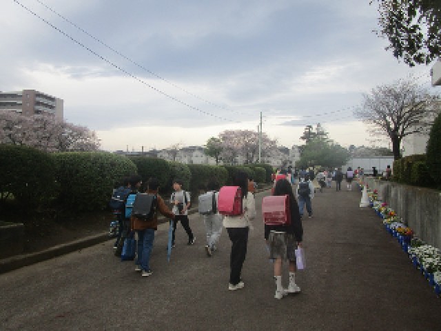 朝からどんより曇り空のお天気になりましたが、何とか傘をささずに登校できました。新年度も安全委員の保護者による見守りが行われ、子供たちは安心して登校することができています。ありがとうございます。今日は入学式があるので、2年生以上は1時間で下校となります。特別時程なので、少し急ぎ足で学校に向かう子もいました。