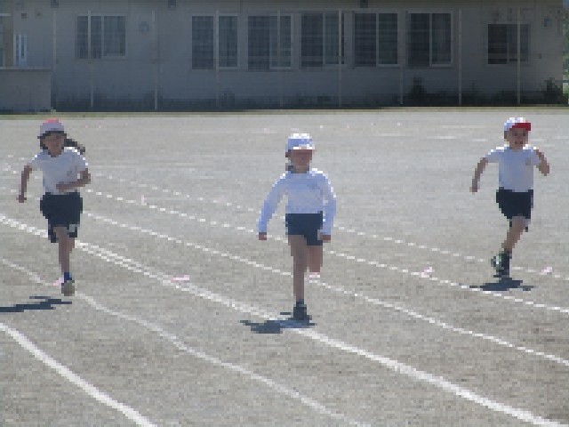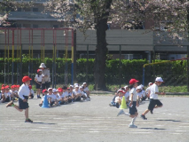 校庭では2年生が、学年体育の授業で、運動会に向けての50m走の記録をとりました。気持ちよい青空の下、2年生になって初めての体育で、どの子も全力疾走で駆け抜けていました。
