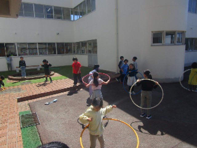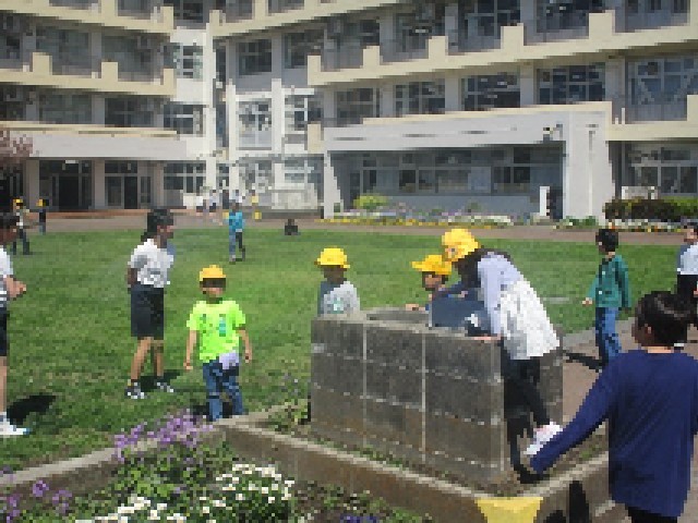 中休みになりました。今日はB時程で、短い休み時間ですが、どの学年の子供たちも校庭に出て、外遊びを楽しむ様子が見られました。1年生も目印の黄色い帽子をかぶって、校庭にあるいろいろな場所を探索して自由に過ごしていました。