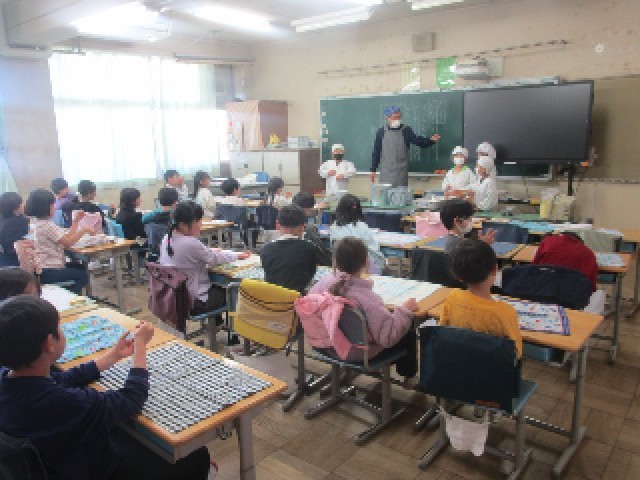 今日からみんなが楽しみにしていた給食も始まりました。それぞれの教室で当番活動も行われ、配膳の約束が確認されました。当番以外の子供たちはしっかり手を洗い、順番も守ってスムーズな配膳に協力していました。