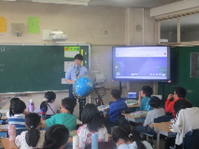 今日から教科担任制の授業が始まっています。5年3組では、新採の先生による初めての社会科の授業です。最初の単元「わたしたちの国土」について、タブレットを使い、バーチャル地球儀システムから世界中の衛星写真を、まるで地球儀を回すようにして閲覧しました。子供たちの興味・関心を引き出すように、いろいろな教材を駆使しながら、これからも先生は教材研究に努めていきます。