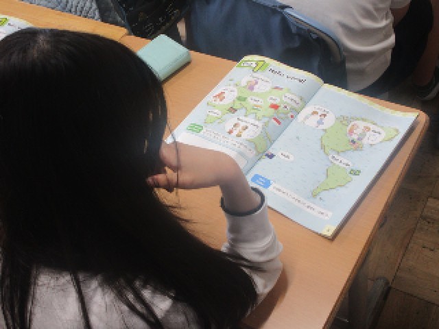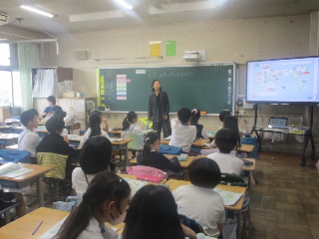 3組の3時間目は、外国語の授業です。初回の今日は、世界の国々のあいさつについて学びます。世界中には様々な国があり、それぞれの国であいさつの仕方も違うことを知りました。あらに実際にあいさつをする経験を通して、いろいろな外国の言葉に慣れ親しんでいました。