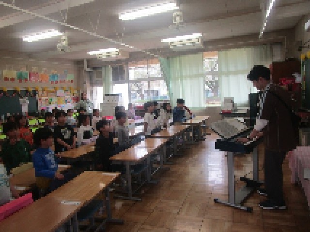 1年生の各教室では、今日から音楽の授業が始まりました。初回の今日は、音楽専科の先生と2組では担任の先生が授業を進め、鶴間小の校歌を練習しました。校歌は早く覚えて歌えるようになってくださいね。