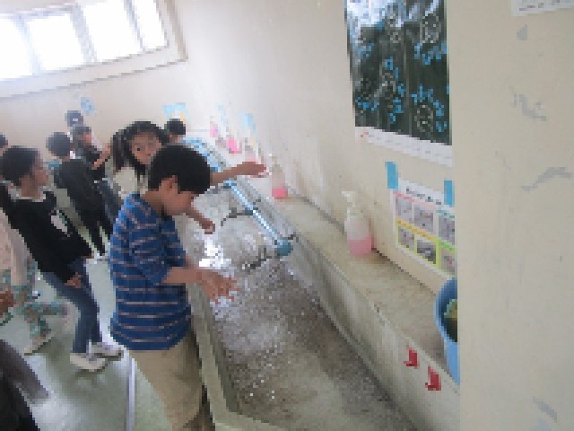 1年生も今日から給食が始まりました。各教室で、配膳の約束ごとを確認し、実際に今週のお当番の子たちが配膳のお手伝いをします。その他の子たちは、しっかり手を洗って静かに待ちましょう。