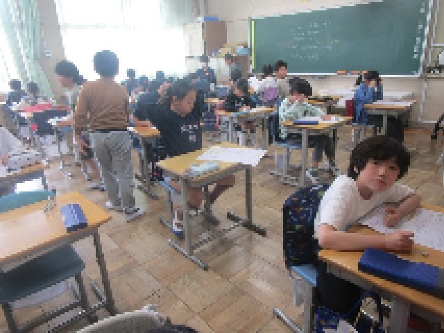 午後の4年生の教室では、算数の最初の単元「大きな数」のテストが行われていました。勉強したことを思い出しながら、みんな集中しています。何度も見直しをしてケアレスミスのないようにしてくださいね。