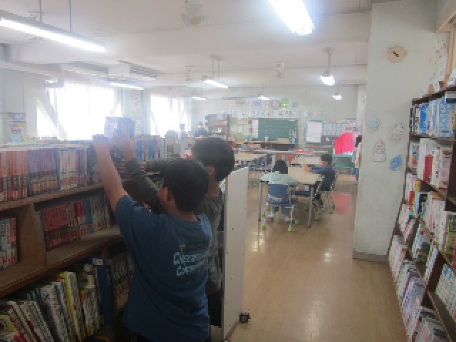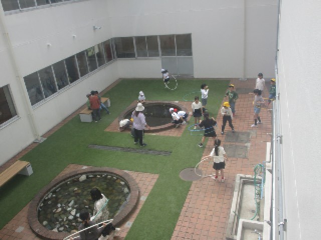 中休みになりました。子供たちは、それぞれで思い思いの休み時間を過ごしています。図書室で本を読んだり、トンボ池の周りでくつろいだりと、自由気ままに楽しんでいます。それでも、自分の使ったも物は後片付けも忘れずに、次の授業もがんばりましょう。