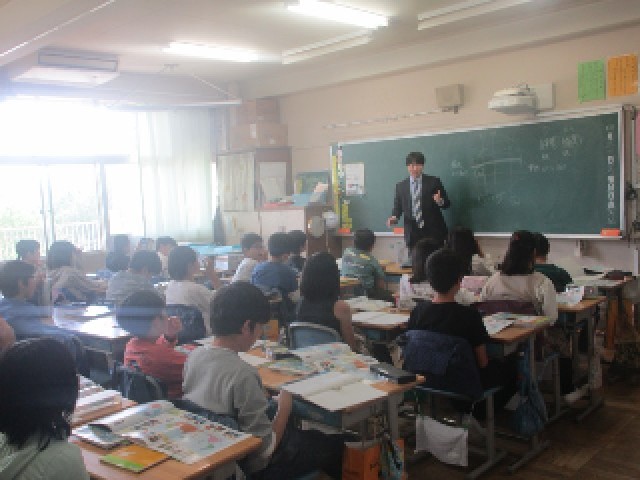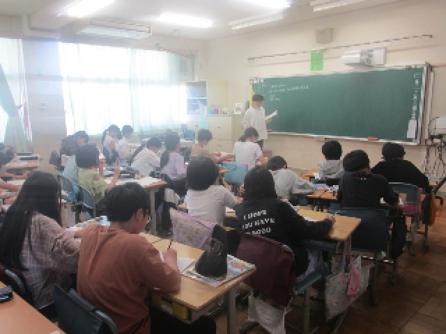給食前の4時間目、高学年のそれぞれの教室では、授業に集中する子供たちの姿が見られました。5年生の3組は理科、2組は社会科で、それぞれの教科の先生が授業を進めていました。6年4組は社会科で、公民分野の授業が進められていました。それぞれ高学年では教科担任制の授業が始動しています。