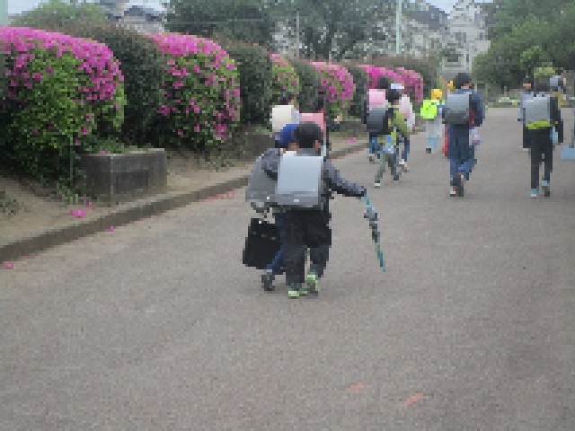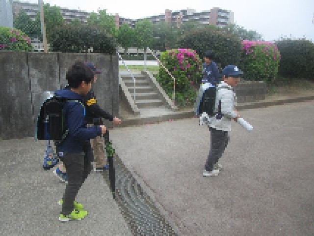 今日は午後から雨の天気予報になっており、子供たちは傘を持っての登校となりました。どんよりした曇り空ですが、午前中は降らないでほしいですね。