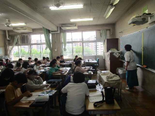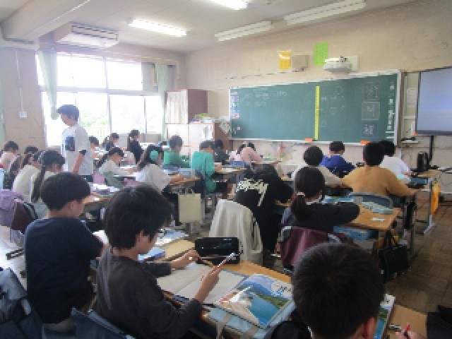 3時間目の3組の理科は、「天気の変化のきまり」についての学習で、天気記号について学習しました。「晴天・晴・くもり」のそれぞれの記号について、覚えやすいように分かりやすく説明していて、子供たちも楽しく学ぶことができました。