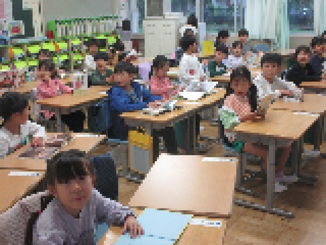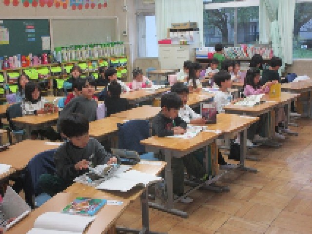 朝の支度を終えた子供たちは、それぞれの教室で本を読んだり、漢字ドリルに取り組んだりして過ごします。雨の登校で慌ただしい朝になりましたが、課題に集中して気持ちを切り替え、1時間目の授業に入っていきます。