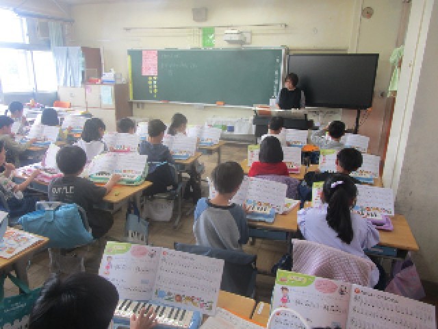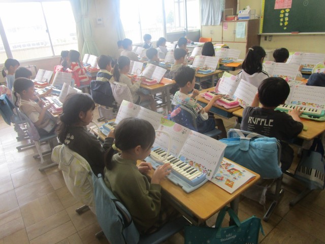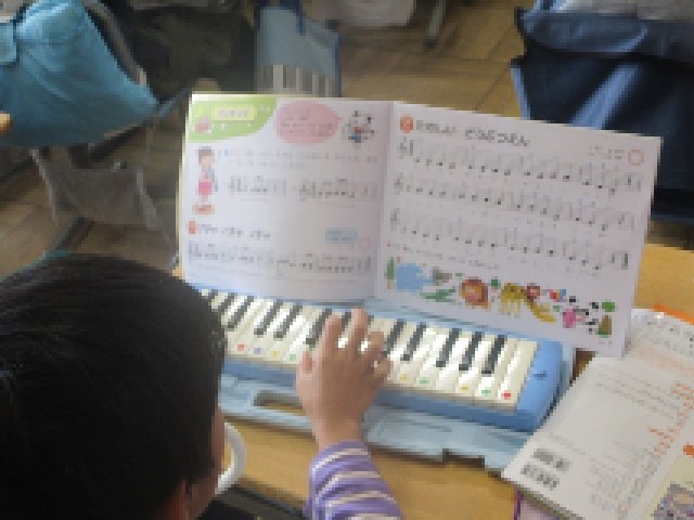 1組の2時間目は、講師の先生による音楽の授業です。鍵盤ハーモニカで、課題曲「たのしい どうぶつえん」をしっかり練習していました。明日は遠足で動物園にも行きます。今日練習した曲を口ずさみながら、楽しい1日になるといいですね。