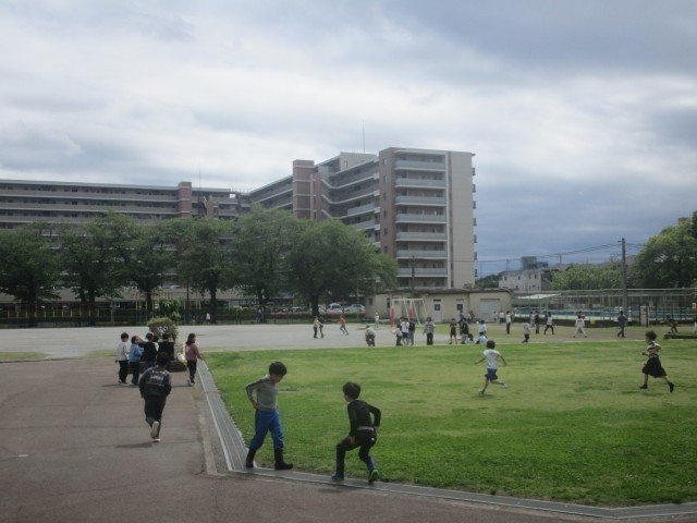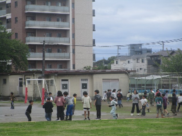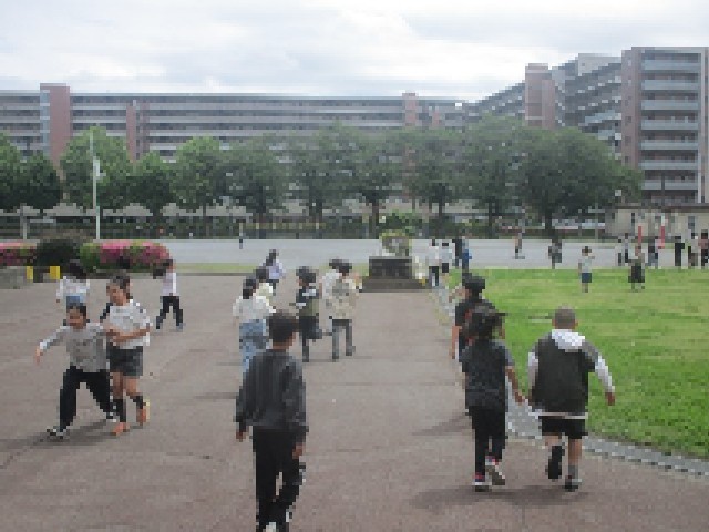 水たまりのあった中休みは、校庭での遊びはできませんでしたが、昼休みにはだいぶ乾いて、一部の場所を除いて校庭での遊びが許可されました。元気に外遊びを楽しむ子供たち。思いっきり体を動かして、午後の授業もがんばりましょう。