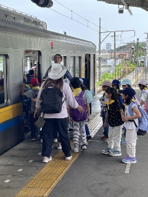 帰りの電車も周囲の人たちを気にしながら行動します。友達同士で声を掛け合う様子も見られて偉かったです。