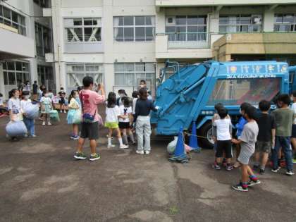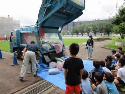 「3R」の大切さ、ゴミ収集車の仕組みなど、実物を見せていただきながらわかりやすく授業をしていただきましたので、楽しみながら学ぶことができました。