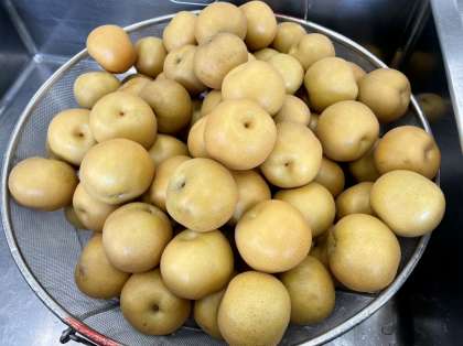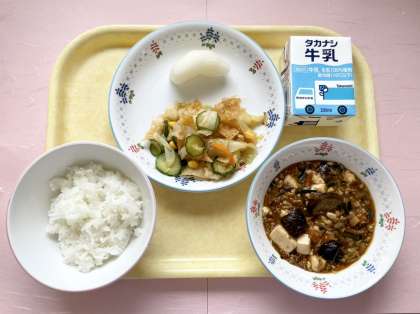 今日は、旬の茄子と梨を献立に取り入れました。張りがあってツヤツヤとした大きな茄子を、定番のマーボー豆腐に加えて秋らしさを出しました。梨は豊水という種類のもので、とても水々しく味も良かったです。
