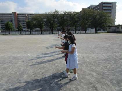 5年生では、グループごとにお互いにアドバイスしながら練習に取り組んでいました。