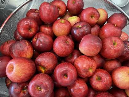 果物は「つがる」という品種のりんごを提供しました。りんごの収穫時期は秋から冬ですが、この「つがる」は9月中旬頃から旬を迎える早生のりんごです。切ったりんごを冷やした冷蔵庫を開けると、フルーティーな良い香りがしました。味もとても甘かったです。季節に合わせたおいしい農作物を納品してくださる八百屋さんや生産者の皆さんに感謝です。