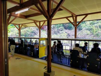 足尾銅山に到着しました。トロッコ列車に順番に乗るところです。