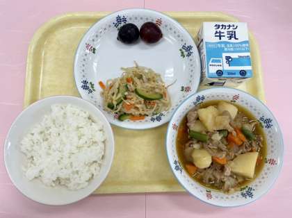 今日は肉じゃがの献立でした。給食の「いつもの肉じゃが」なのですが、これが思っていた以上に子どもたちから人気でした。配膳室にいる間にも「わたし、肉じゃが好き!」と複数の子が声をかけてきてくれ、実際にどのクラスもよく食べてくれました。