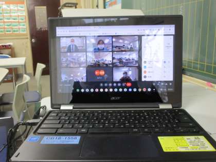 今年度最後の全校朝会でしたが、講話は、すっかりお馴染みとなったGoogle Meetでのライブ配信を各教室に行いました。