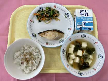 2年生から6年生までの給食が本日から始まりました。初日は、春を感じる桜おこわの献立です。桜の塩漬けを塩抜きして、小枝から花の部分だけを取っておこわに加えました。桜の香り漂う、季節の味に仕上がったと思います。魚の塩こうじ焼きは、塩こうじで漬けたさわらをオーブンで焼きました。