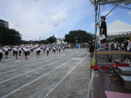 今年度も、入れ替え制で行ったため、開会式には、1・2年のみが校庭で参加し、他の学年は教室でライブ中継したものを見ました。