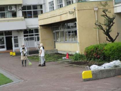 さて、今日は、植栽ボランティアの皆様が、花壇に植えてあった花を抜いてくださいました。校舎の中規模改修工事で花壇が使えなくなってしまうためです。