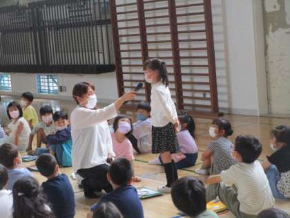 最後に、体育館に集まって感想を発表していましたが、2年生からは、1年生と仲良くなれてよかった、上手に説明できた等の感想がありました。1年生からも、楽しかった。2年生と仲良くなれた等の感想がありました。