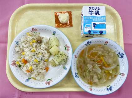 そして、この丁寧にとった鶏がらスープを使ってピラフのごはんを炊いたり、スープを作ったりしています。これが町田の小学校給食のおいしさの秘訣のひとつです。