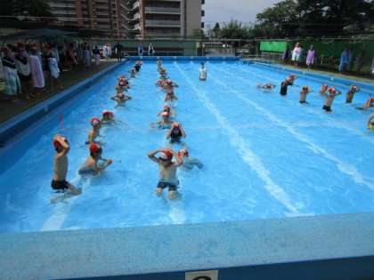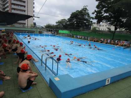 天気が心配でしたが、雨は何とか降りませんでしたので、5年生がプールに入ることができ、歓声をあげていました。