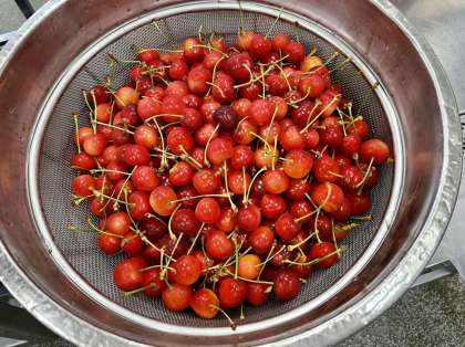 今日の果物は、今が旬のさくらんぼでした。種類は、山形県産の佐藤錦です。佐藤錦は6月中旬から7月はじめ頃まで市場に出回る品種で、さくらんぼの最高峰と称されることもあるほど人気が高い品質です。甘さの中に程よい酸味があり、ジューシーな実が特徴なのだとか。