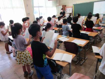 今日も、暑さ対策をしながら、プールに入ったり、学習を行ったりしました。
