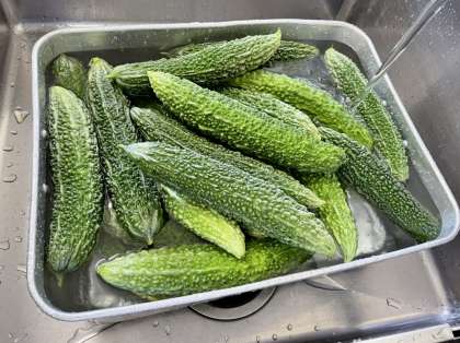 ゴーヤは、夏野菜の王様ともいわれるほどビタミンが豊富な野菜で、沖縄に長生きの人が多いのは、伝統食であるゴーヤをよく食べることも理由のひとつなのではないかといわれています。ゴーヤの苦味を和らげるために、今日は塩で揉んだ後に茹でてから加えました。