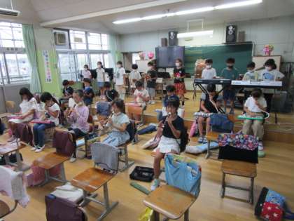 3年生の音楽では、1学期の学習の成果として、歌と合奏を披露してくれました。
