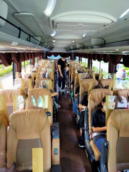 出発式を終えバスに乗りました。7時10分出発です。