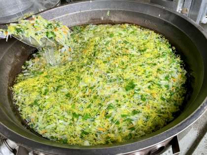 今日は菊の花を入れたお浸しを作りましたが、どの学年もよく食べてくれました。そして何より、「先生、きっかあえって何?」と質問してきてくれた児童に「今日は重陽の節句だから、菊の花が入ったお浸しだよー」と伝えたところ、「あー!あの菊のやつね!」と答えてくれたことが嬉しかったです。「秋に出る菊の花が入った料理」が、少しでも子供たちの記憶に残り、食事から日本の四季を感じることが出来る機会が増えたら素敵だなと思います。