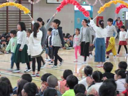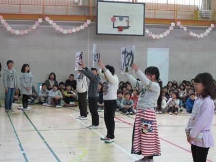 【4月12日】 1年生を迎える会 公開日 2019/06/20 更新日 2019/06/20 校長室より 1年生93名を迎え、全校児童598名が揃いました。 鶴間小の出発です。 アサガオのタネや歌のプレゼント、学校クイズなどをして、1年生に鶴間小学校を紹介しました。 児童全員が一日も早く、環境に慣れ、それぞれの力を発揮してほしいと思います。 校長室より