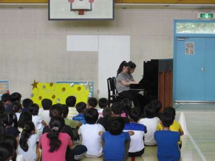 【6月20日】 第1回アフタヌーンコンサート 公開日 2019/06/20 更新日 2019/06/20 校長室より 今年度最初のアフタヌーンコンサートは町田市在住の双子の姉妹、木村りえ さん、りさ さんのピアノの連弾でした。 ドボルザーク作曲「新世界より」を弾いてくださいました。ピアノの心地よい音が鶴間小学校の体育館に響き渡りました。 貴重な時間をありがとうございました。 校長室より