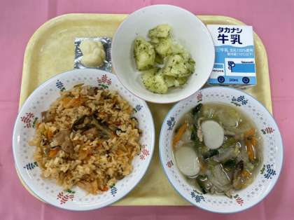今日は韓国の食材キムチとトックを使った献立でした。給食で使うキムチは辛みや酸味が少なく、低学年でも食べやすい味付けのものです。本場の味とは少し違うかもしれませんが、外国の食べ物に興味を持つきっかけとして、給食では皆さんが出来るだけ安心して食べられる味を心がけて作っています。