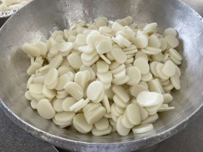 トックは給食でもしばしば登場するので、1年生も「今日は韓国のおもちが入ったスープでしょ?」とすっかりお馴染みの様子でした。日本のおもちとは違いうるち米を使って作られているので、もちもちとしていても歯切れが良く、食べやすいのが特徴です。