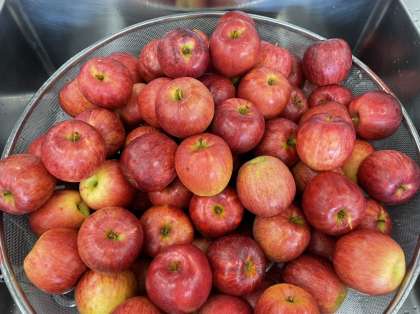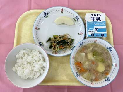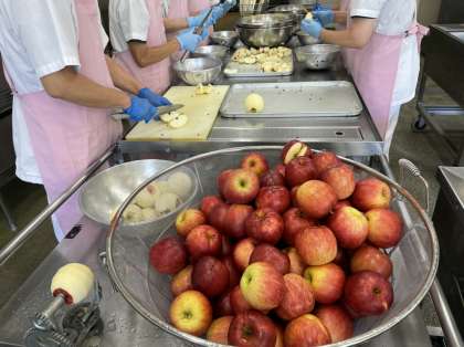 りんごの旬は秋から冬で、時季によって様々な種類のりんごを食べることができます。今日は、秋に旬を迎える「つがる」を献立に取り入れました。